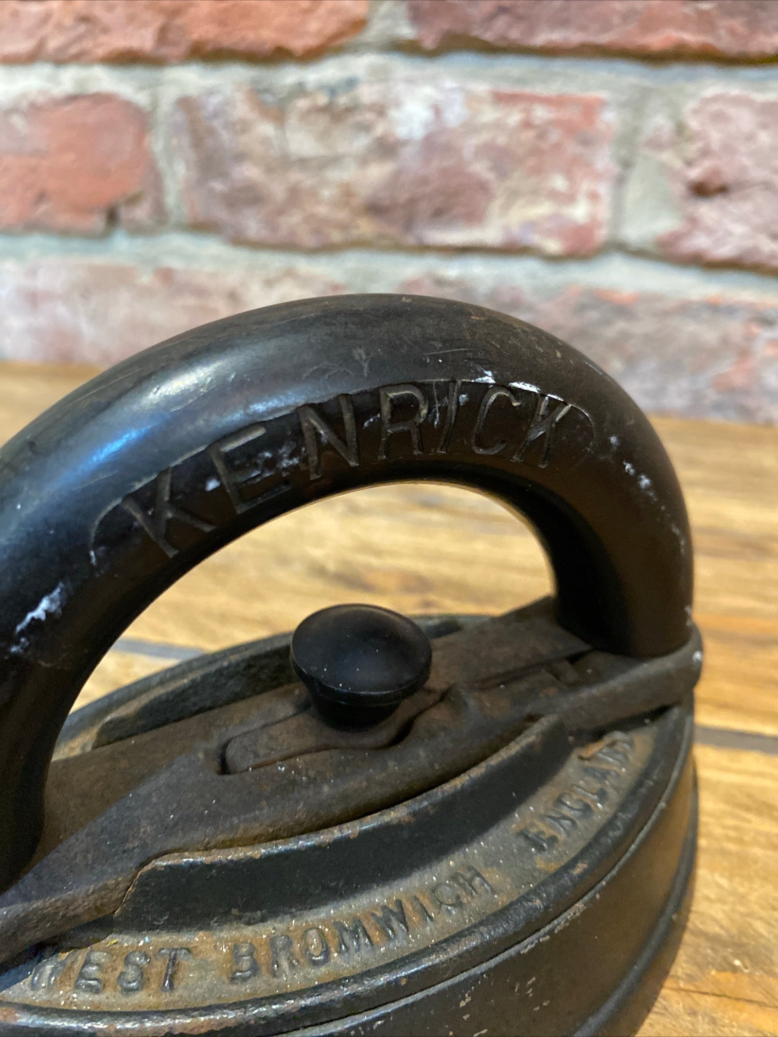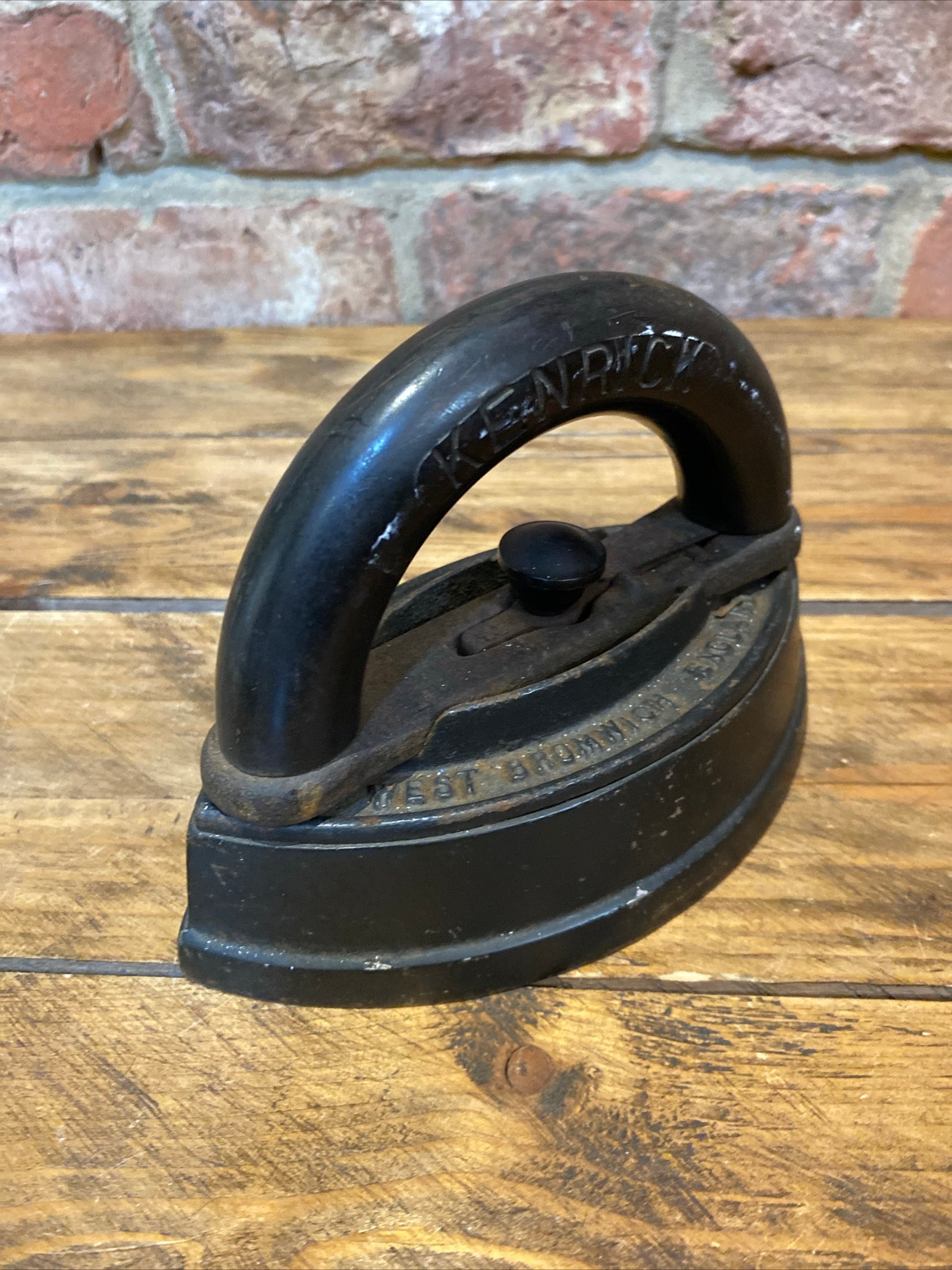 Inspire warmth and charm in your home with this Antique Kenrick Flat Iron. Perfect as a decorative or curio cabinet item, or even for practical use. Make it yours by studying the photos and measuring the dimensions: 17.5 cm long, 9.5 cm wide, and 12 cm high.