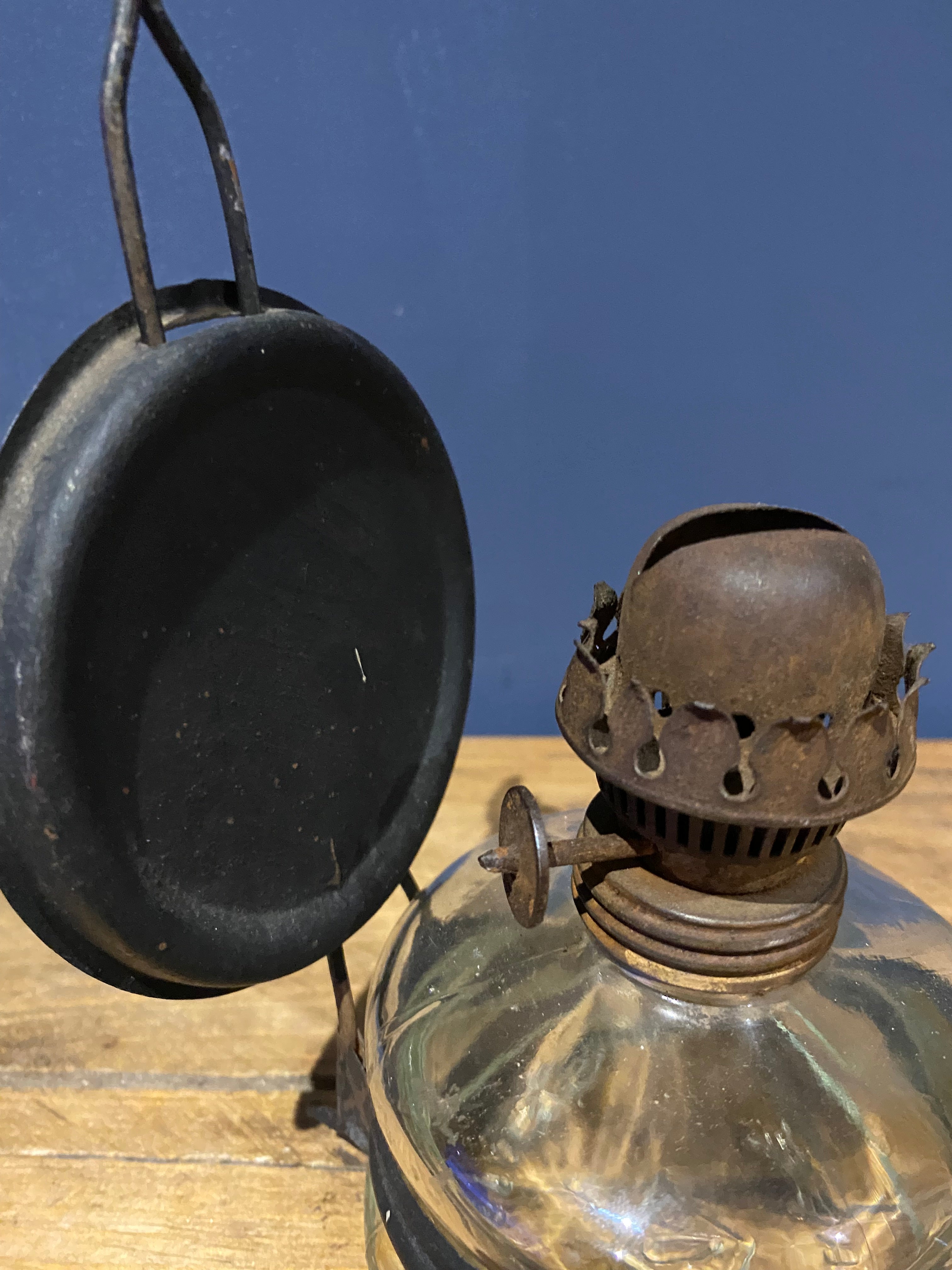 Lovely little wall hanging Pacabahce oil lamp , being sold as non working and untested. It would have had a small clear glass shade on it buy alas this has gone missing at some stage.