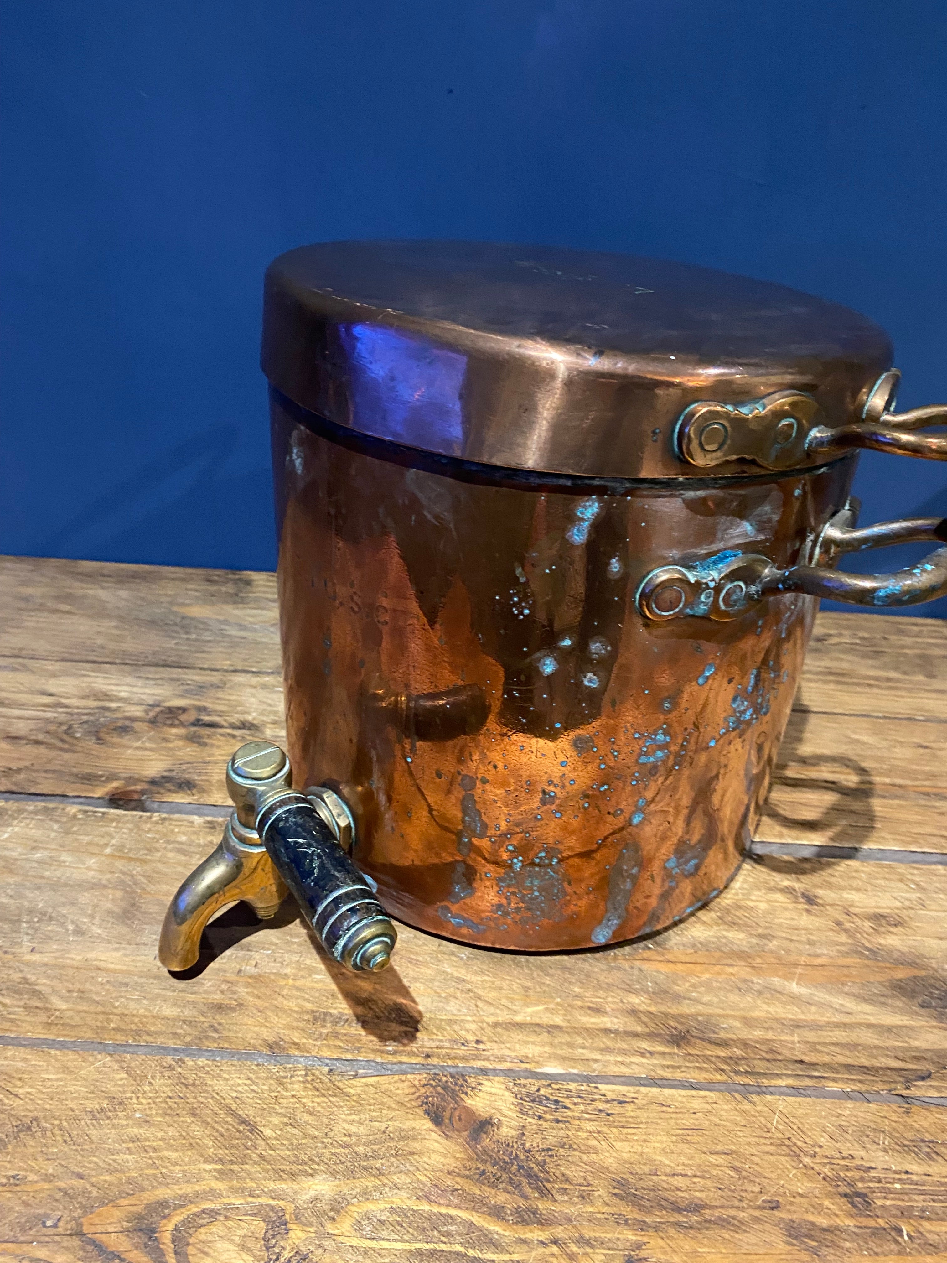 Nice and unusual heavy copper hot water urn. It has the letters E.I.U.S.C. Stamped into the lid and the body . Great decorative item .