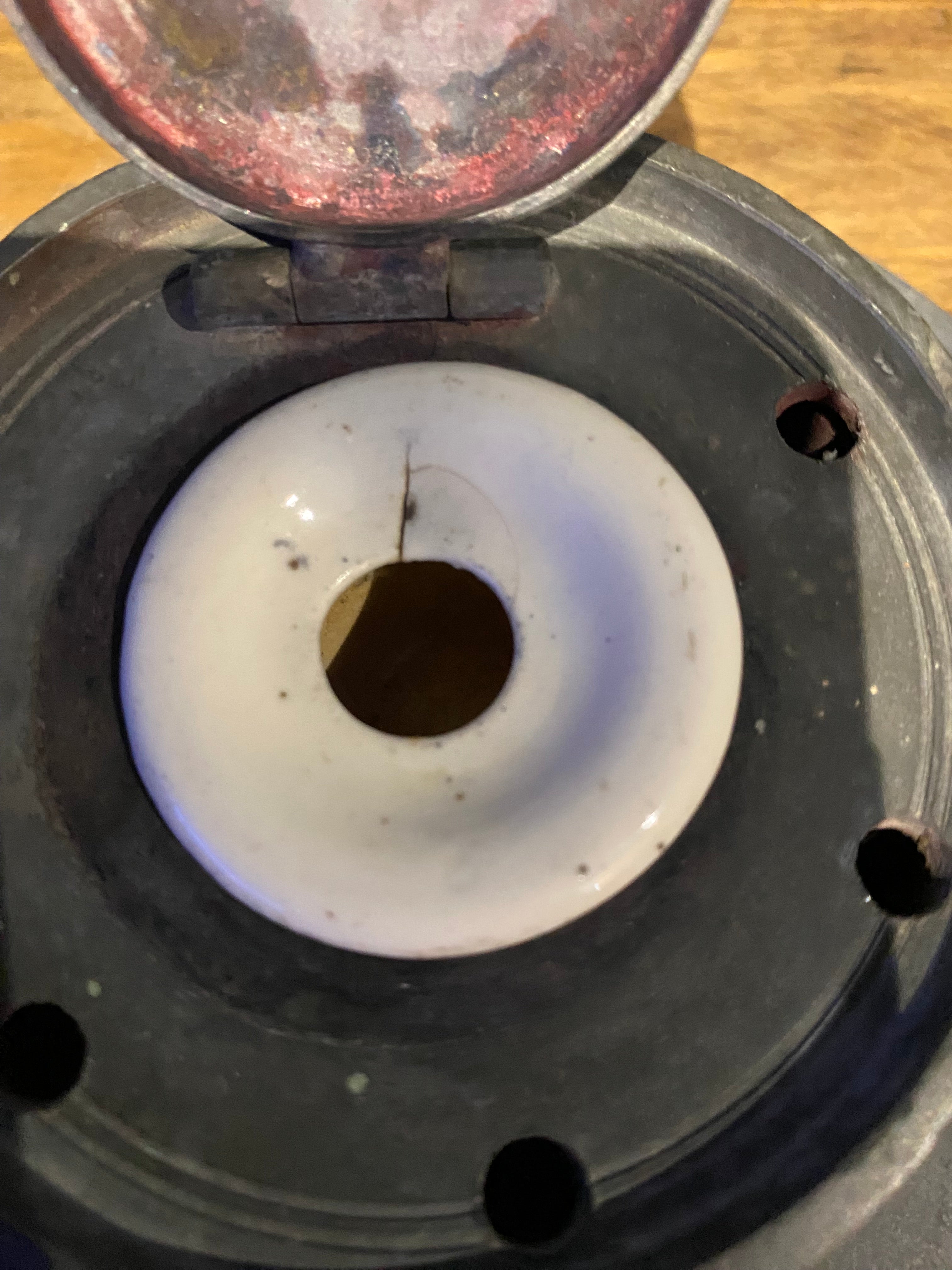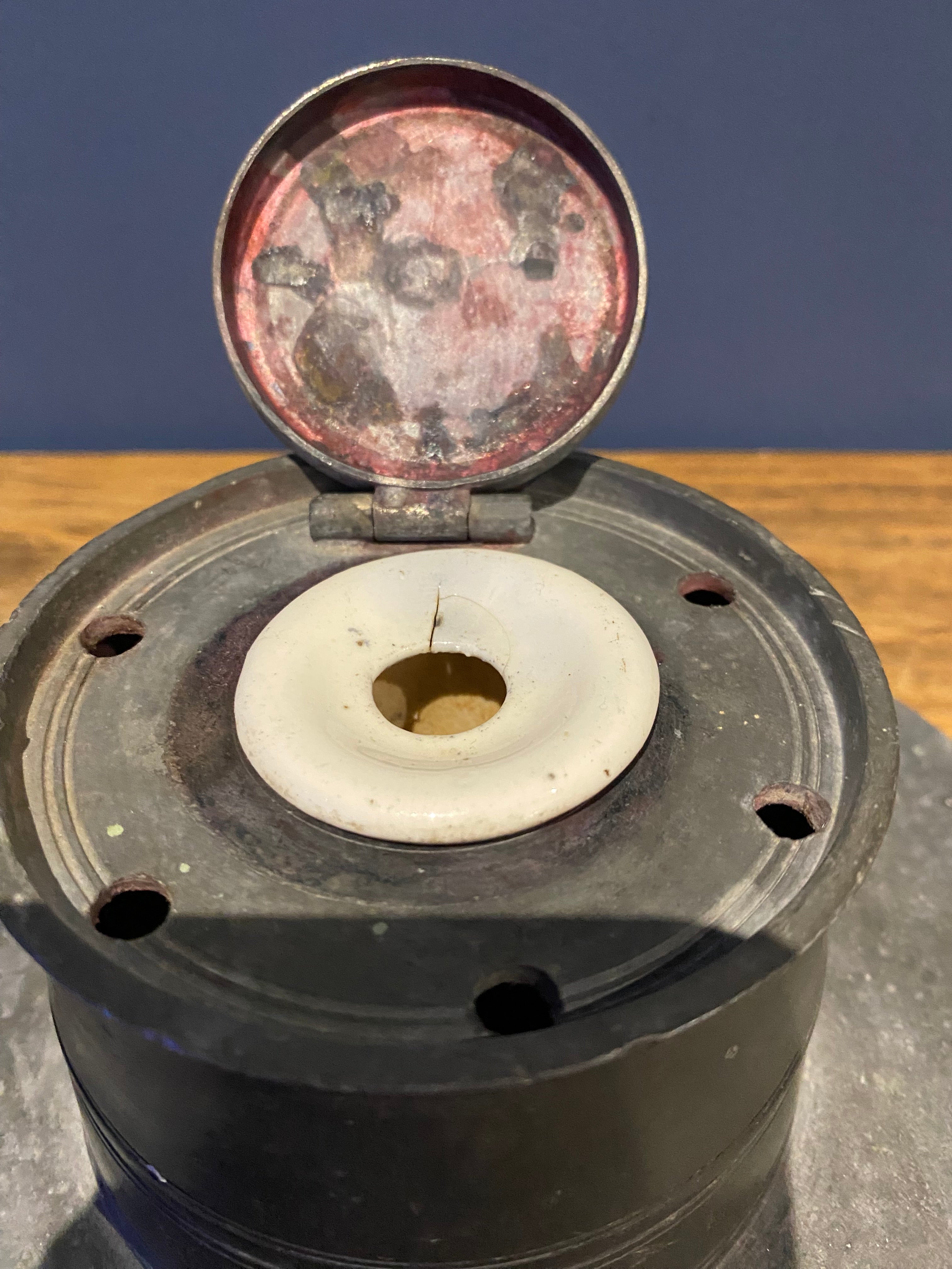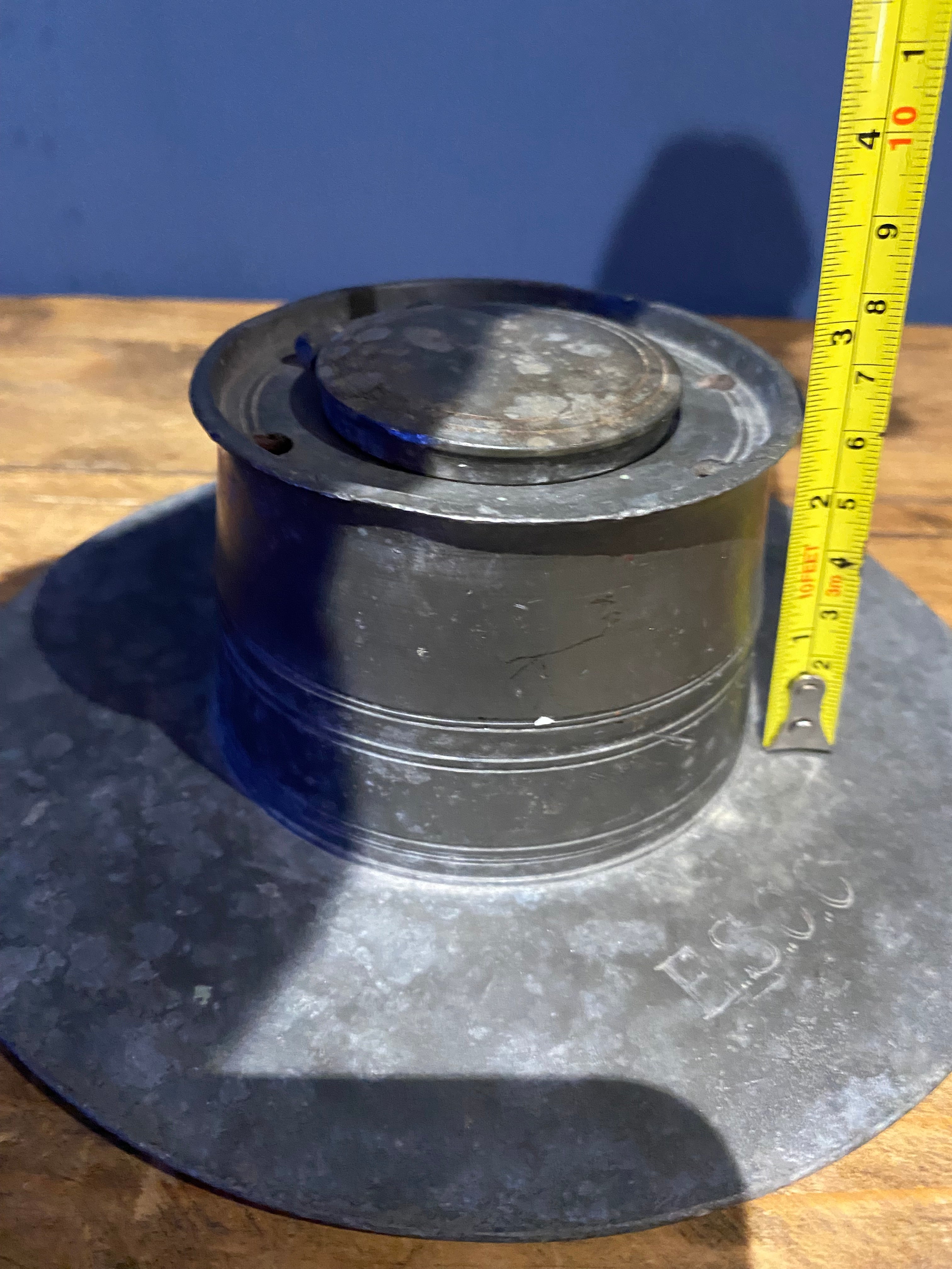 Vintage/ Antique Pewter Inkwell , Stamped E.S.C.C.