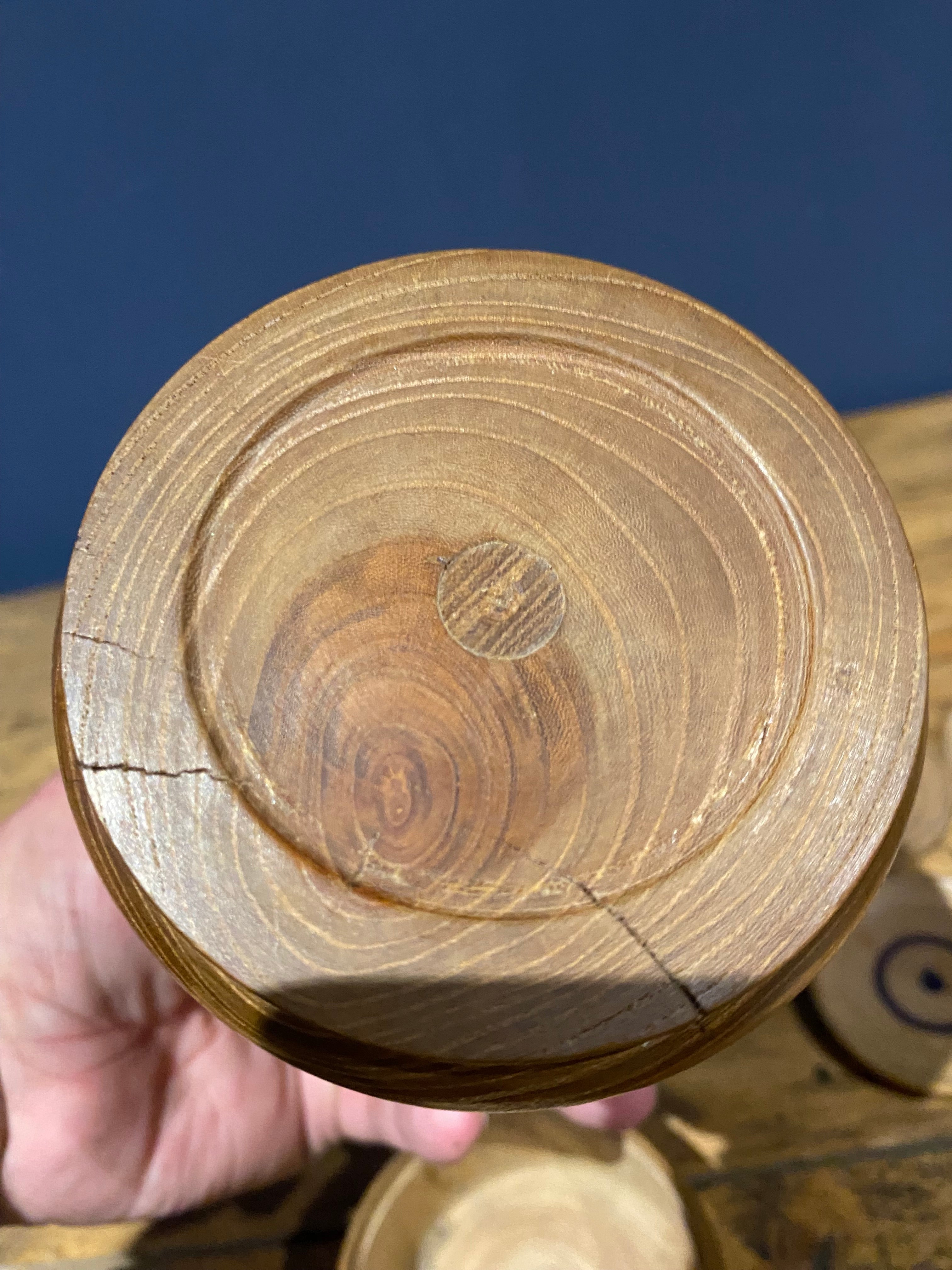 Very unusual and very well made game . I was told it was oriental but I have no proof of this . A very well made shaker for a dice or suchlike. Shake it and tge top lifts up and the die will sit in the little concave bit, sadly the die or dice or counter is Not present so I am only guessing on this. The whole body splits in two revealing four turned wood discs .