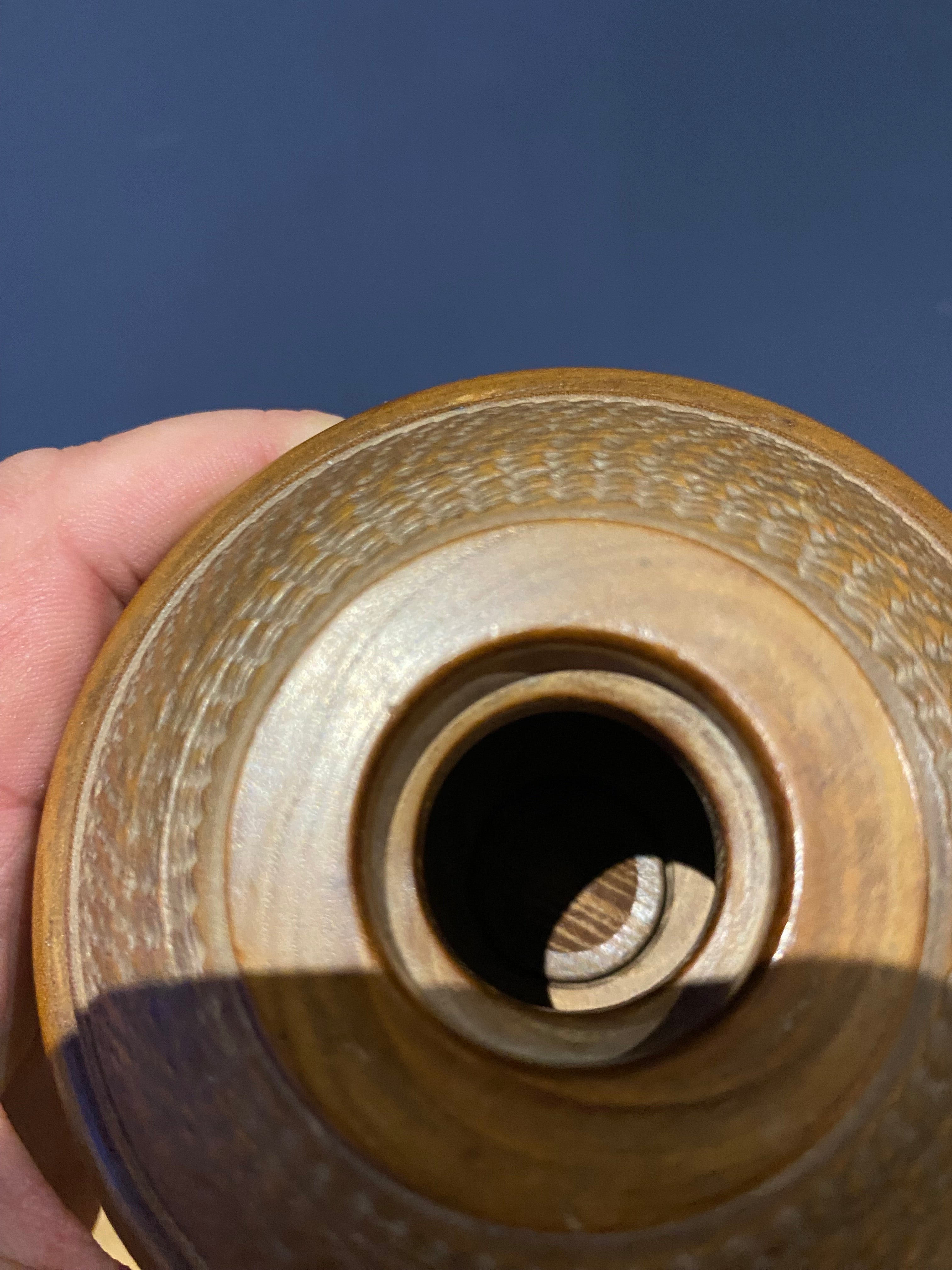 Very good condition and measures approximately 15 cms high and 9.5 cms diameter.
